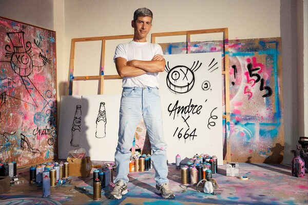 The collaboration with 1664 will feature a “creative takeover” of the beer’s labels and packaging, showcasing André’s graffiti style as if spray-painted directly onto the existing 1664 bottles and merch. The collaboration is envisioned as a global “world tour” bringing André’s unique artistic style to 1664’s key markets. The partnership, “1664 x André”, will become a global celebration of creative industry and free spirits.