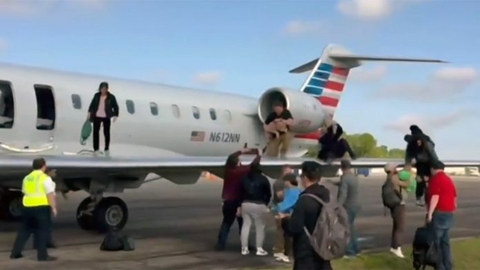 Prior to takeoff, an American Airlines flight 3023 headed to Miami, Florida, was evacuated while at Denver International Airport in July. Above, a scene from that incident.  (Instagram/@highlymigratoryfishing)