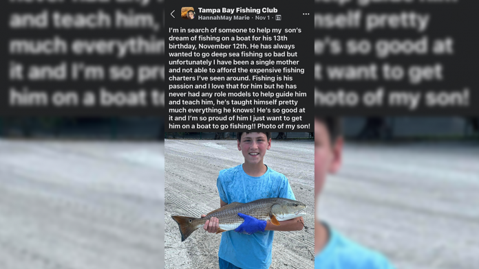 Marie posted on the Tampa Bay Fishing Club group on Facebook looking to see if anyone could take her son, Stash, out fishing on a boat for his birthday. (Hannah May Marie)