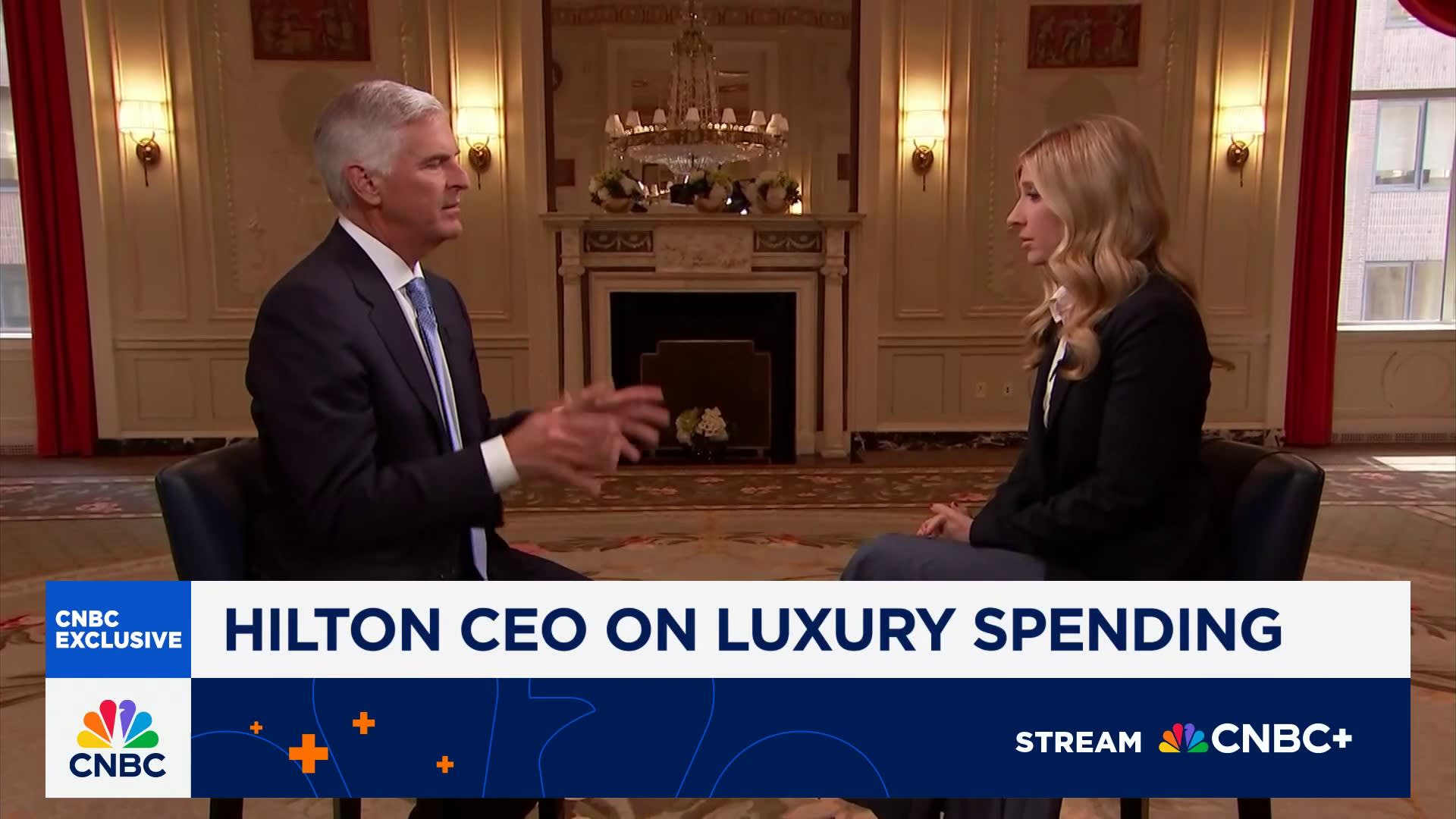 CNBC’s Sara Eisen speaks with Hilton CEO Chris Nassetta to discuss the reopening of the Waldorf Astoria Hotel, luxury spending and tariff impact to global travel and bookings.