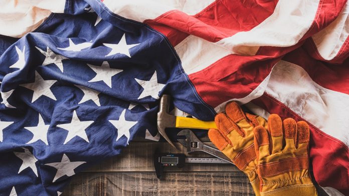 American flag and labor gear