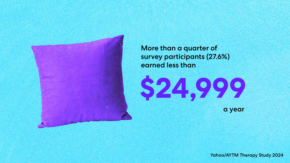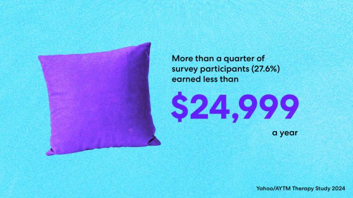 There is a bright side: Results from a recent Yahoo-commissioned survey on therapy participation conducted by AYTM, a technology-driven insights firm focused on independent testing and research, are encouraging. The survey, which included 750 participants who had undergone therapy, either at the time of the survey or in the past, found that the highest percentage of participants (27.6%) were from the lowest income group (earning up to $24,999 annually). This indicates that while the challenges facing lower-income demographics are substantial, and many barriers to mental health care remain, lower-income individuals are seeking and accessing therapy at rates on par or greater than those in other income brackets.
