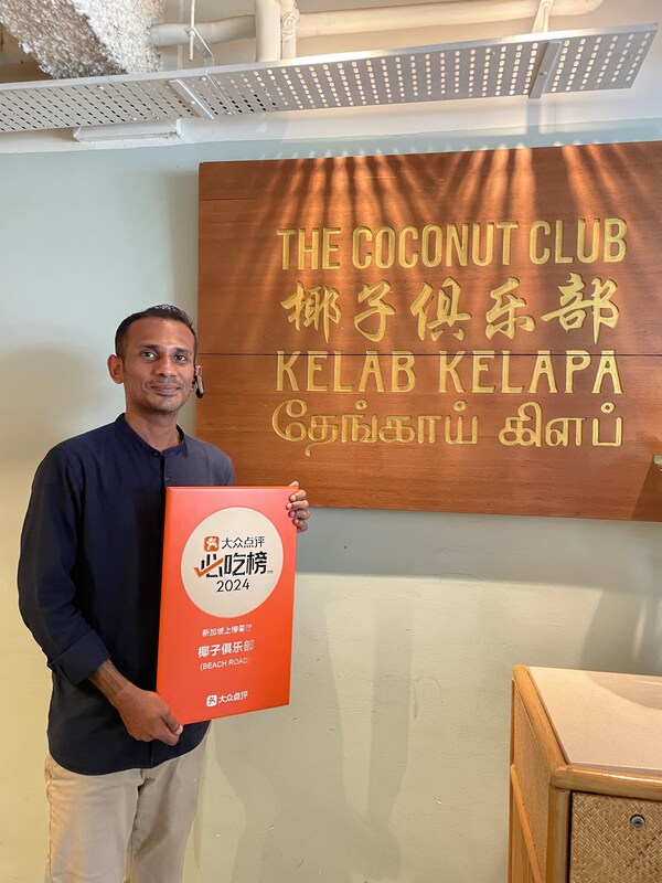 On behalf of Dianping, SpoonX presented a certificate to The Coconut Club for being featured on the 2024 'Must-Eat List' in Singapore.