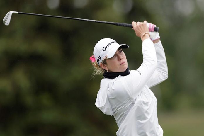 Creamer taking a swing during the first round of the Mizuho Americas Open at Liberty National Golf Club on May 16, 2024, in New Jersey — the last tournament she played in. (Adam Hunger/Getty Images)